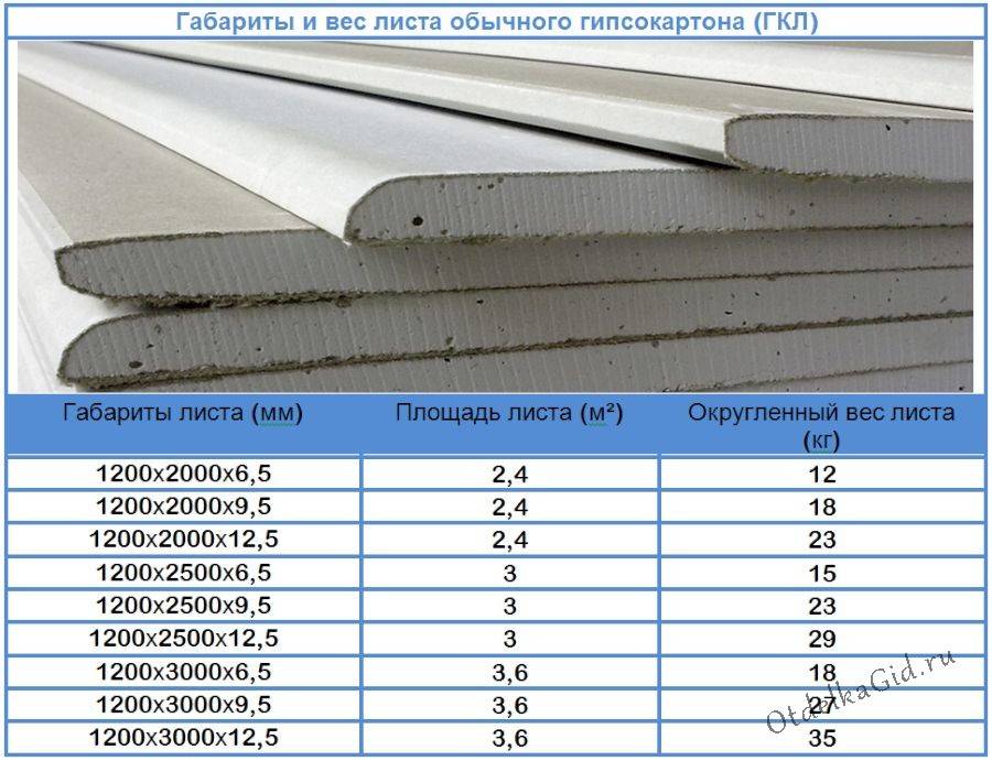 Вес ГКЛ связан с его площадью и толщиной. Во всём мире существуют общепринятые стандарты габаритов: