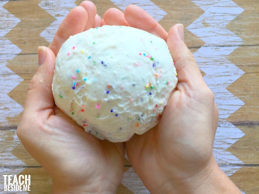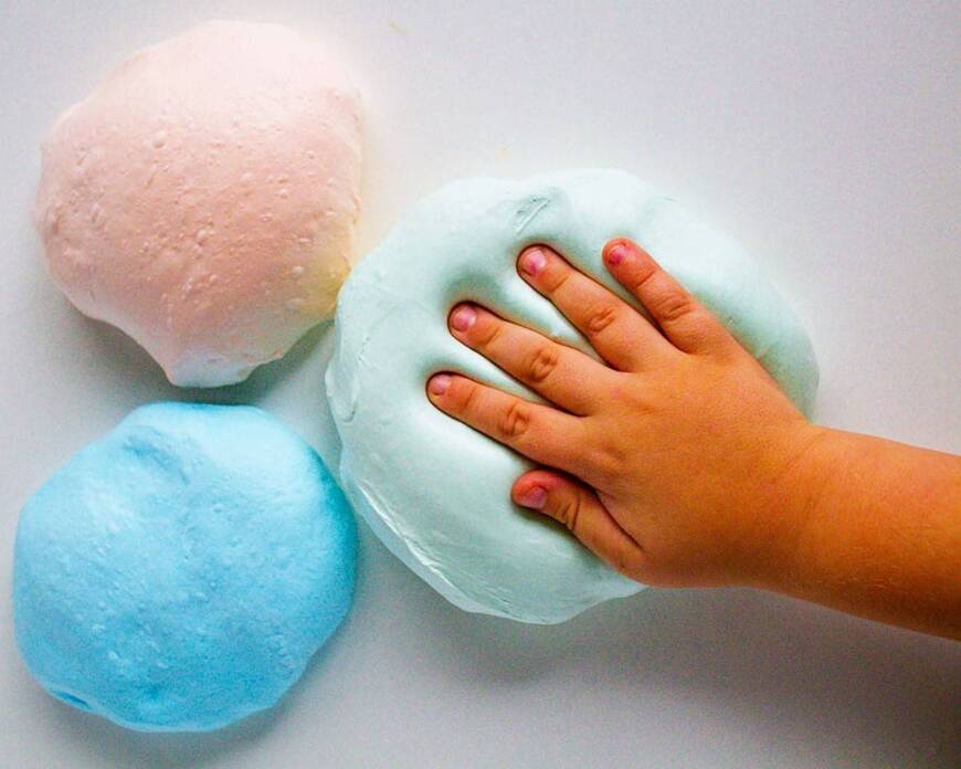 Добавляем его в заранее смешанные ингредиенты (неважно, в какой последовательности). В результате должен получиться пышный лизун, который будет хрустеть