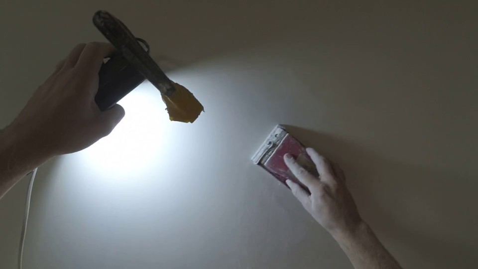 Пройдя всю поверхность крупнозернистым абразивом, продолжите шлифовку при помощи мелкой наждачки. При использовании более мелкого наждачного материала обязательно подносите источник освещении как можно ближе к стене.