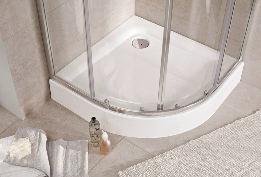 - Высокие поддоны оснащены сливом в 90 мм, являются устройством 2 в 1: ванна и душевая кабинка. Такое изделие выдерживает количество воды – 15 см в высоту.