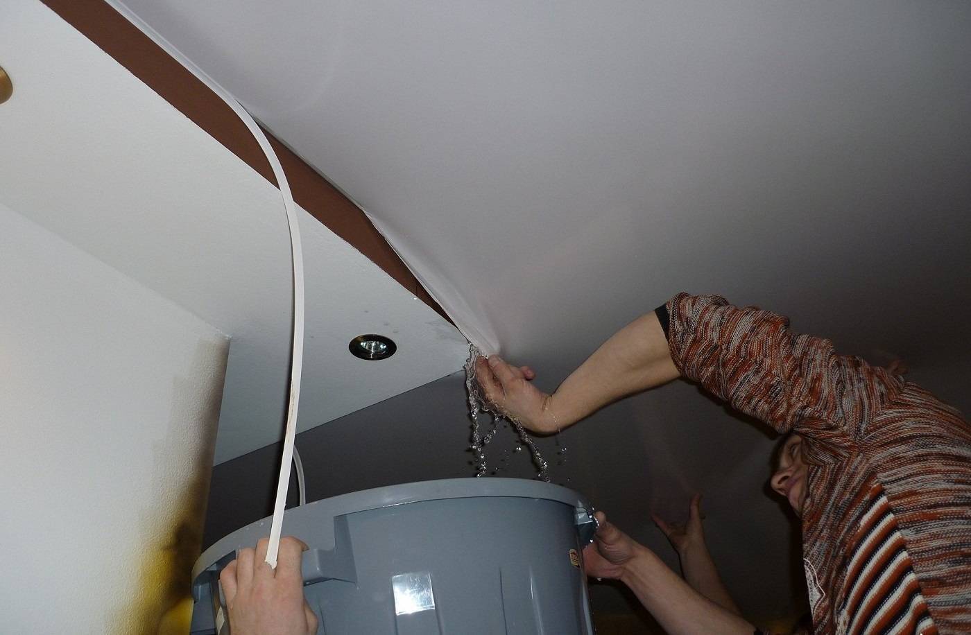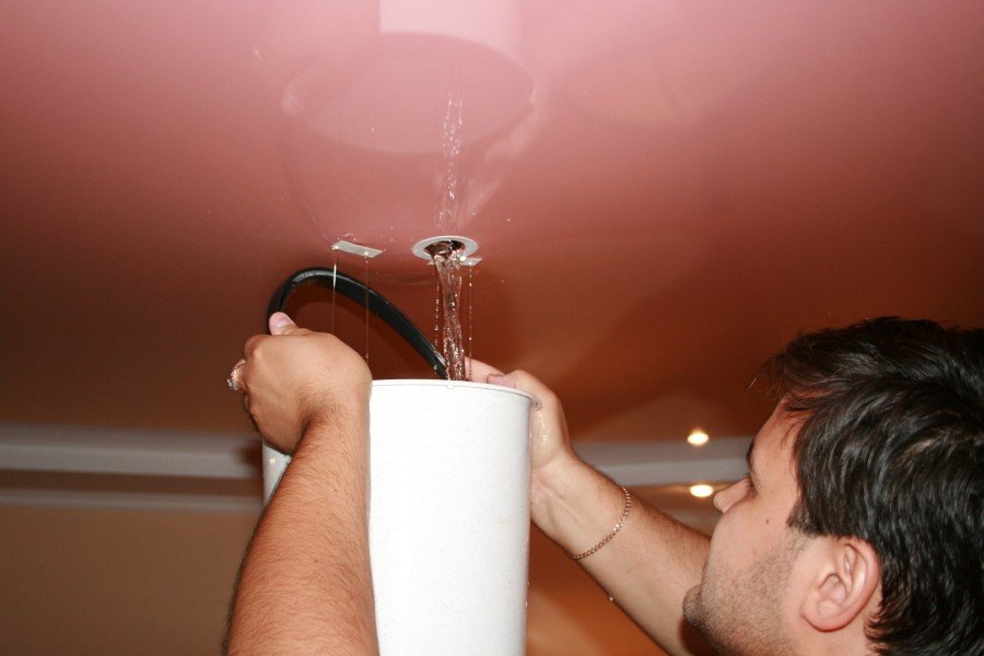 Как слить воду с натяжного потолка: первоочередные действия