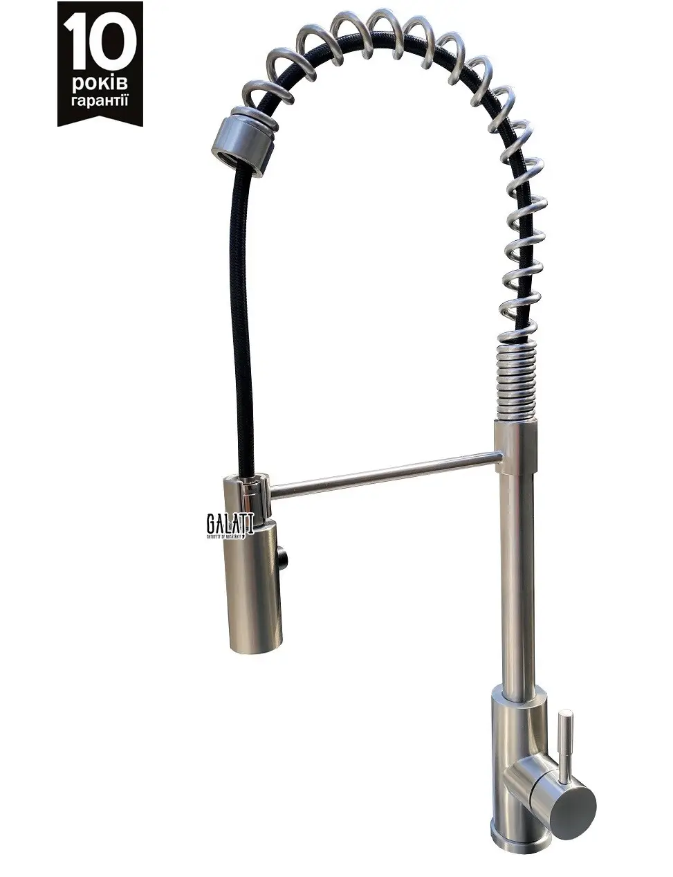 - Пружина, установленная под раковиной, позволяет возвращать трубку шланга в начало.