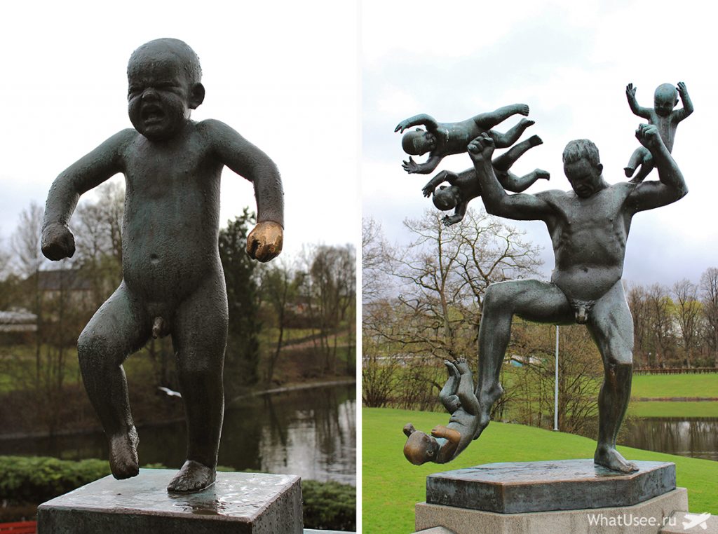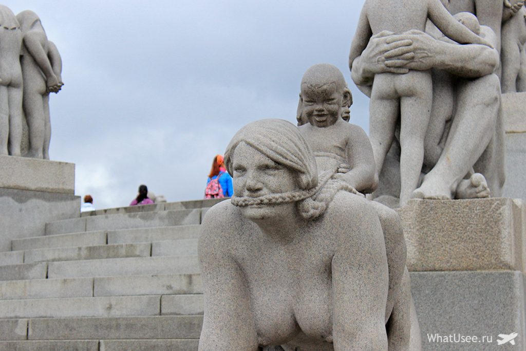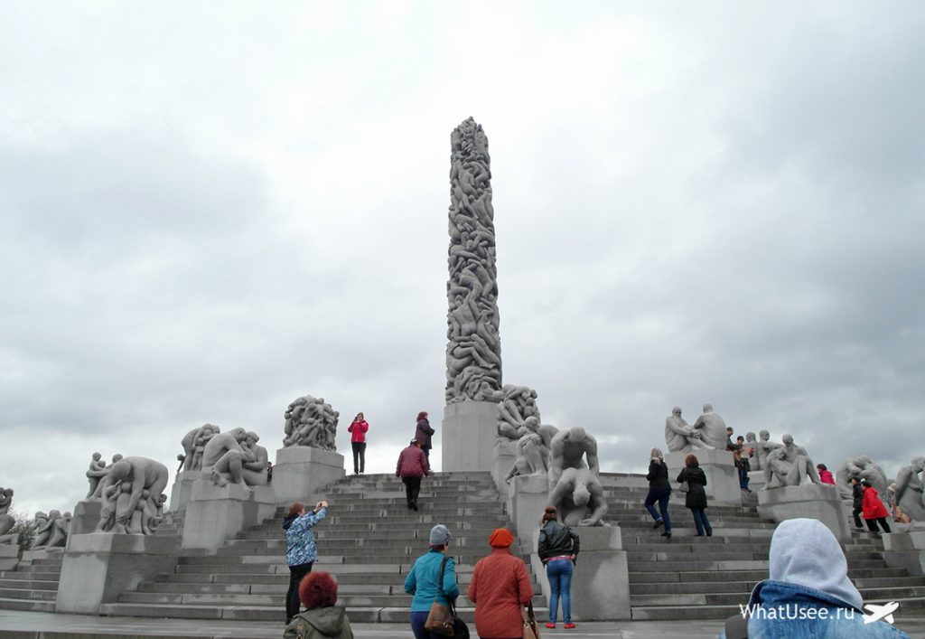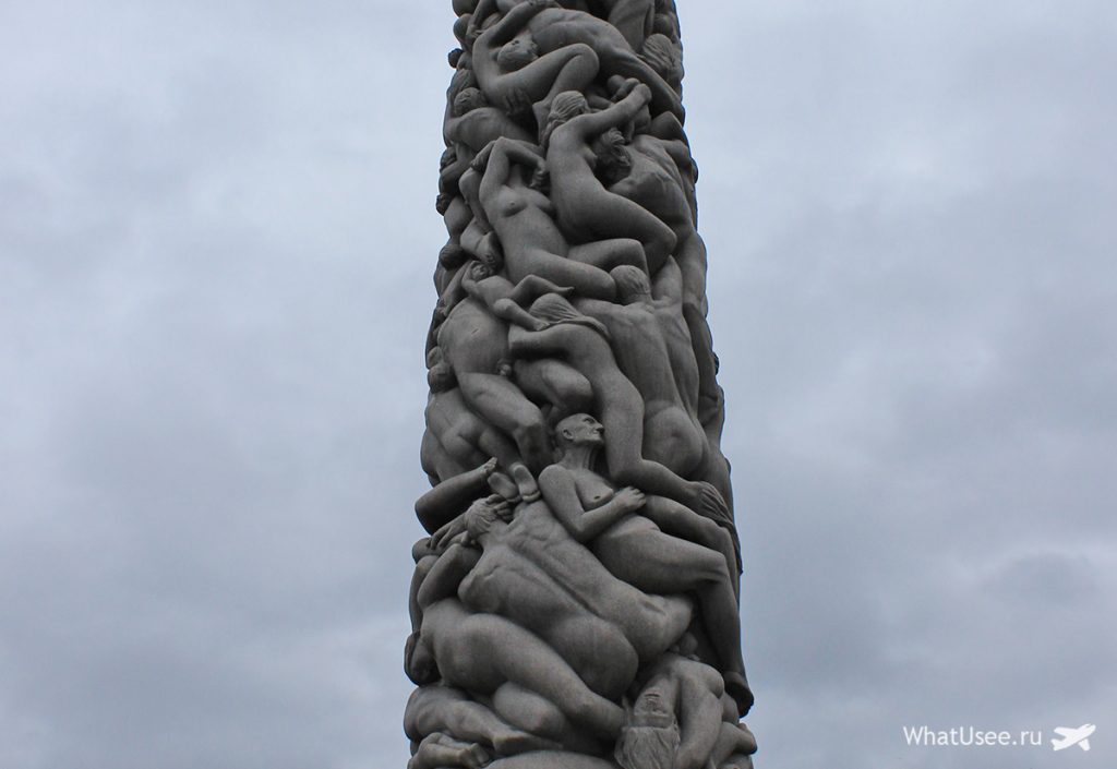 Вот наконец, мы в Осло. Люблю скандинавскую архитектуру, люблю этот дизайн, тёмный камень, много стекла, прямые линии — но Осло ничем меня не удивил. Ну ничего интересного там нет. Город как город. Что непременно стоит посмотреть в Осло — парк Вигеллана. Скульптор работал в характерном для него грубом стиле, пытаясь показать и выразить сущность человеческих стремлений, желаний. Скульптуры неоднозначные, мнения у посетителей разнятся. Мне было интересно погулять по парку, но работы показались жутковатыми. Особенно обелиск — кто смотрел Каннибала с Мадсом Миккельсоном, тот поймёт