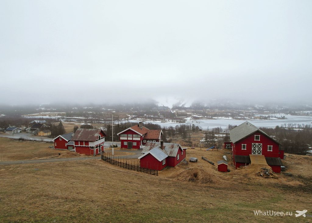 Как видно, в горах всё ещё лежит снег — и это в конце мая! Видны также горнолыжные склоны и трассы. Горнолыжный сезон на юге Норвегии, как правило, заканчивается в марте-апреле, кое-где на севере склоны работают до мая.