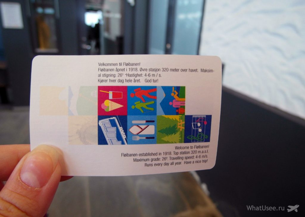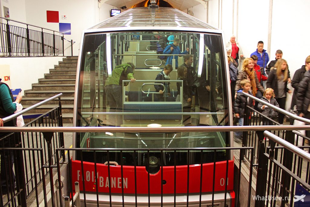 Сюда легко дойти пешком за 5 минут от набережной Брюгген и рыбного рынка. Покупаем билет на бергенский фуникулёр и ждём своей очереди, чтобы подняться на вершину горы Флёйен.