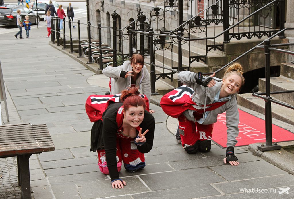 Что касается норвежцев, мне они показались довольно дружелюбными. Сами на контакт не идут, но помочь не откажутся. Ооочень много спортсменов — все красивые, здоровые, розовощекие блондинистые девушки и молодые люди. Популярна спортивная ходьба, велосипед и лыжи, а еще спортивная форма национальных расцветок — красный фон, синие полоски.