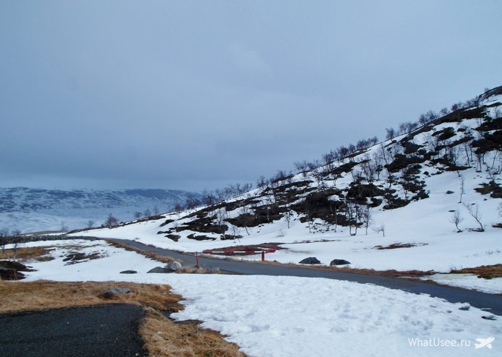 Даже если вы едете на фьорды летом, всё равно одевайтесь теплее, так как то и дело дует пронизывающий скандинавский ветер, или попадаются вот такие, ещё не растаявшие к весне места: