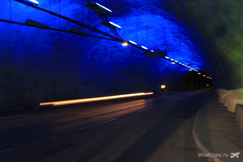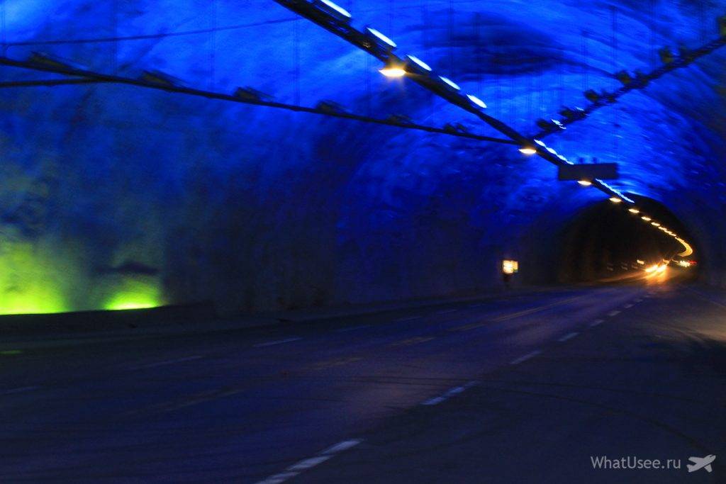 В норвежской губернии Согн-ог-Фьюране вообще очень много чего интересного. Одна из вещей, которые стоит увидеть — Лердальский тоннель. Лердальский тоннель — самый длинный автомобильный тоннель в мире, который расположен на трассе, связывающей Осло с Бергеном. Его длина составляет целых 24,5 километра! Это очень большое расстояние. Чтобы водители не привыкали к однообразному тоннелю и не теряли бдительность, было принято решение вот так красиво и необычно подсвечивать стены тоннеля. Плюс в тоннеле располагаются три грота, в которых можно остановиться и передохнуть.