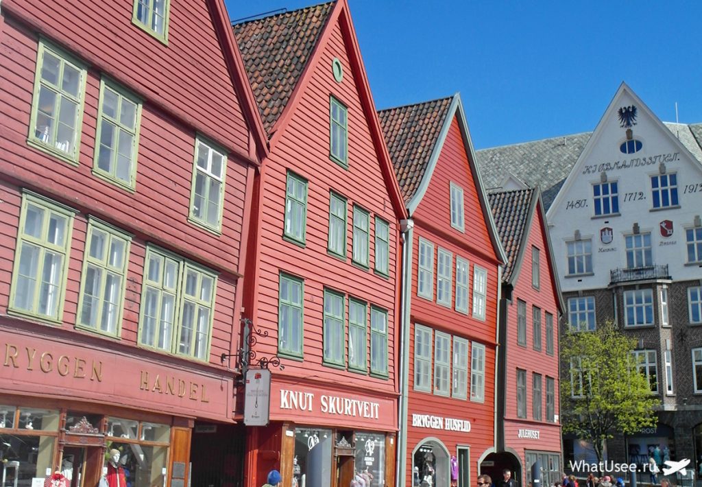 Наверное, эти красно-жёлтые деревянные домики узнает каждый, кто был в Норвегии Сразу же за набережной Брюгген теснятся узкие маленькие улочки старого города Бергена. Дома одно- и двухэтажные, маленькие деревянные особняки. Говорят, цены на недвижимость в этой части Бергена заоблачные — как, впрочем, и везде в норвежском королевстве.