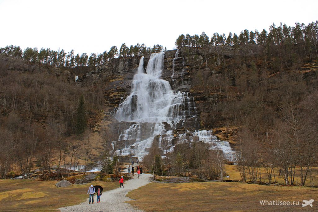 По дороге к Согнефьорду заезжаем полюбоваться ещё одним норвежским водопадом. Это водопад Твиндефоссен (Tvindefossen) около местечка Восс.