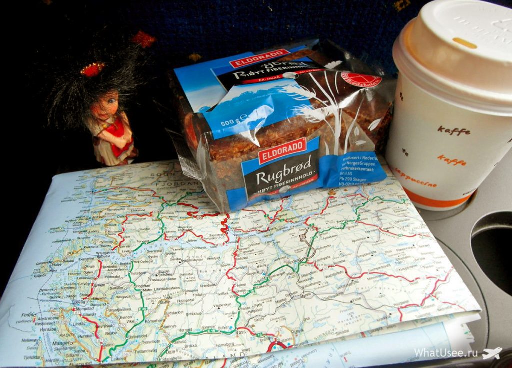 Набор путника: кофе (он в Скандинавии везде крепкий и вкусный), ржаной хлеб со злаками и норвежский тролль