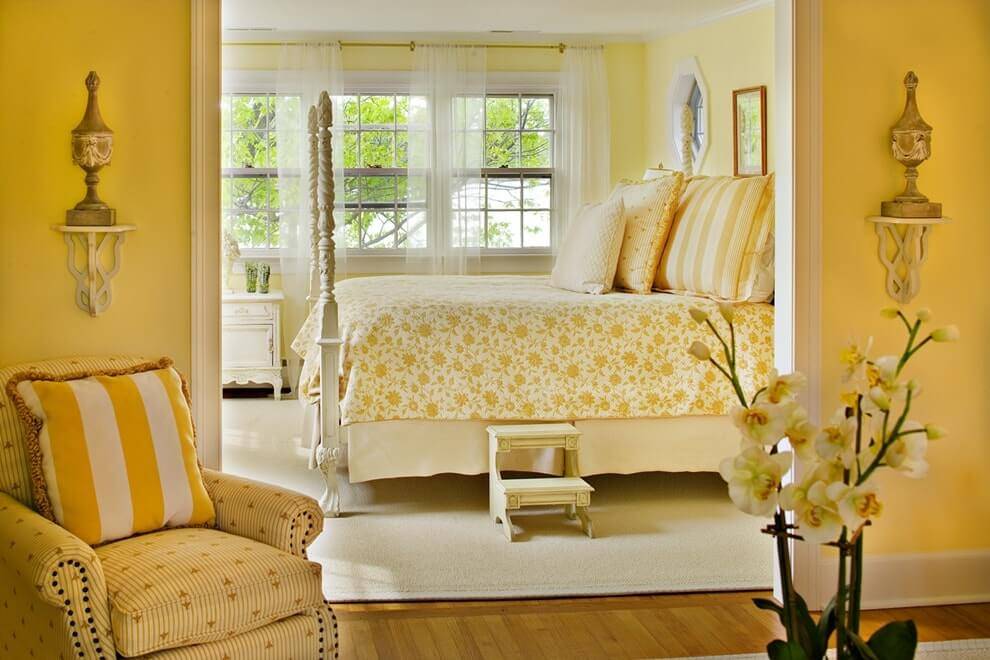 В спальне, желтый – всегда сюрприз. Считается, его порывистый, слишком импульсивный характер мешает уснуть, видеть спокойные сны. Зато утром желтый помогает пробудиться, заряжает оптимизмом.