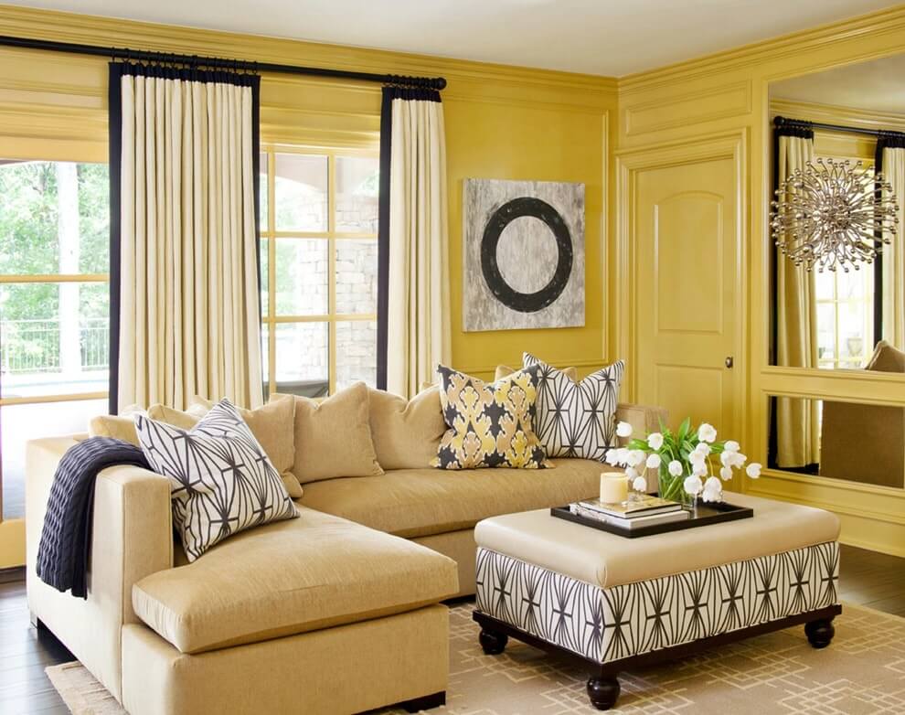 Желтый цвет в интерьере гостиной