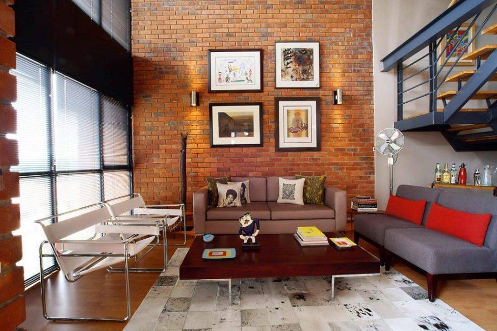 Кирпич на стенах в стиле лофт играет ключевую роль, он используется практически во всех возможных применениях