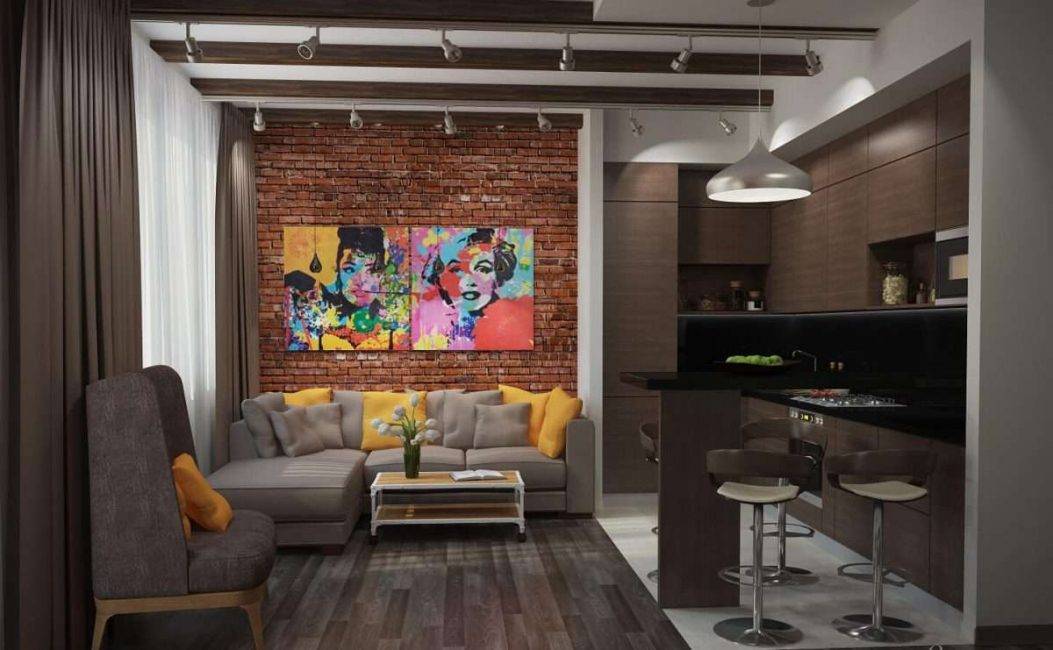Всё ещё актуальный в 2019 году стиль и лучший для объединения гостиной и кухни. Совмещение дает большое свободное пространство, именно то, что нужно лофту. Сейчас классическое определение уже не актуально, и под лофтом понимается любой интерьер, где есть не скрытые технические моменты. Бетон, кирпичная кладка, открытая проводка — это красиво. Если вам это кажется странным, вас убедят фото.
