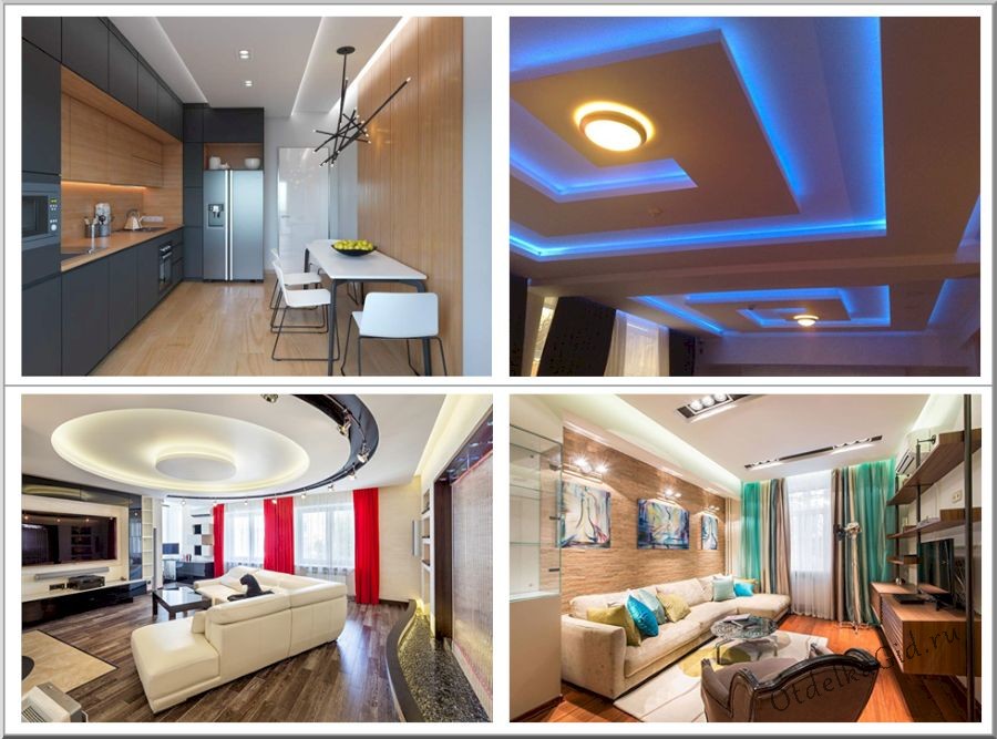 И да, дизайн потолка из гипсокартона в зале — почти такое же безграничное поле для экспериментов, как конструктор Lego для малышей. Возможности в формировании конструкции потолка и компоновке освещения ограничены лишь Вашей фантазией.