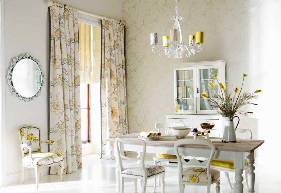 - если вы хотите добавить в обстановку жизнерадостные нотки и позитив – сделайте выбор в пользу тканей с узорами для занавесок. Но не забывайте, что большое количество контрастов вызывает зрительное утомление и не позволит создать комфортную обстановку. Хорошая альтернатива – милый весенний узор в нежных тонах;