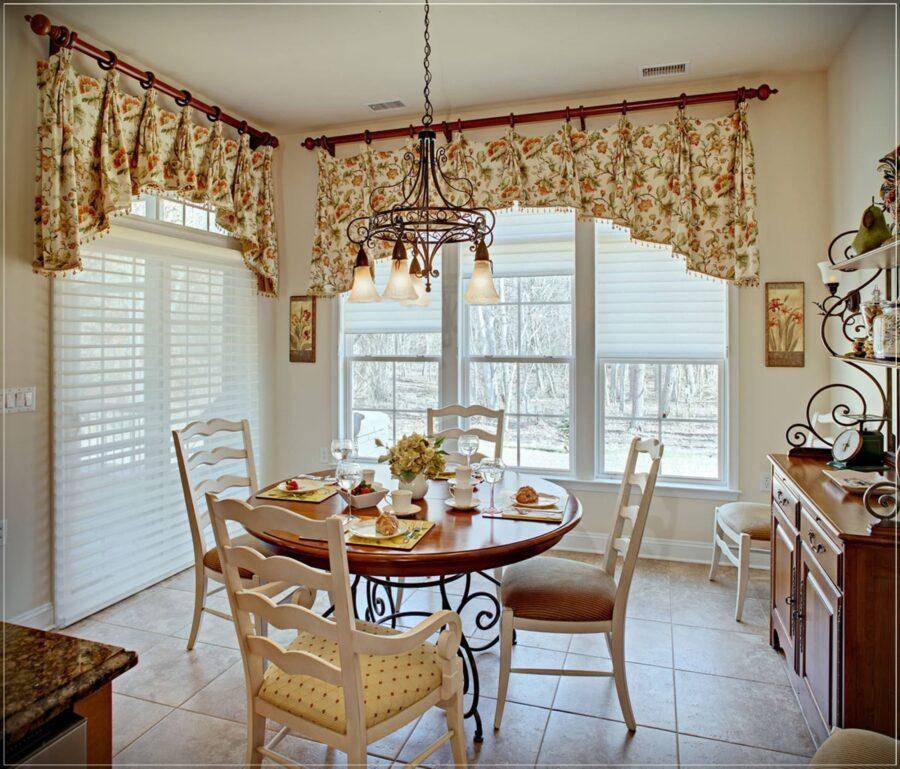 Виды ламбрекенов для кухни в этом стиле должны быть также выполнены с использованием классических аксессуаров в фасоне: