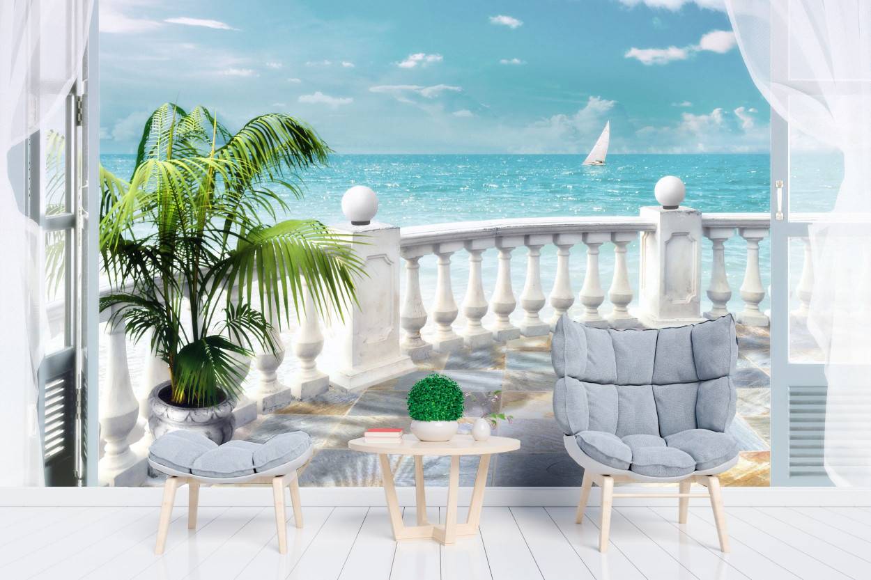 Если кухня большая, а вам хочется дополнить интерьер чем-то необычным, подумайте о фотообоях. Абстрактные рисунки не подойдут — лучше всего выбрать те, на которых изображены пейзажи, присущие Греции