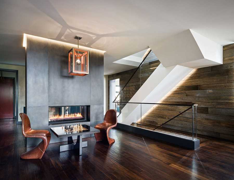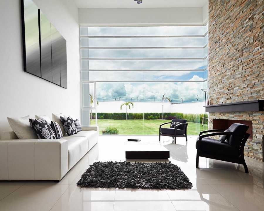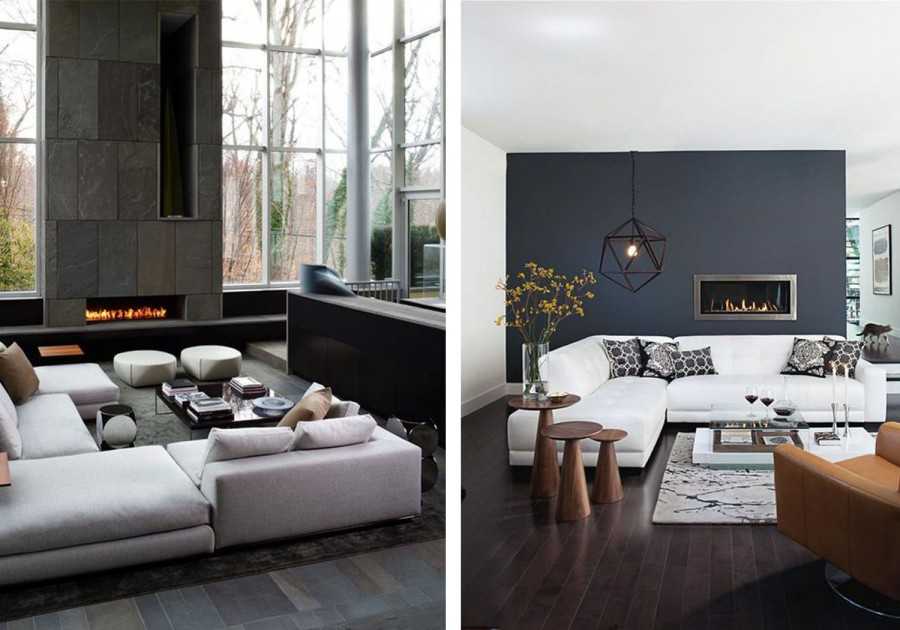 Точкой отсчета, которая предопределит многое в дизайне современного пространства может стать выбор цвета. Современный интерьер дома, выполненный в черных (серых) и белых оттенках с сочетанием деревянных поверхностей – вариант беспроигрышный. Драматичный цветовой контраст задаст глубину и внутренний ритм. А игра геометрических поверхностей, мягких форм и самых разных текстур добавит пространству выразительности.