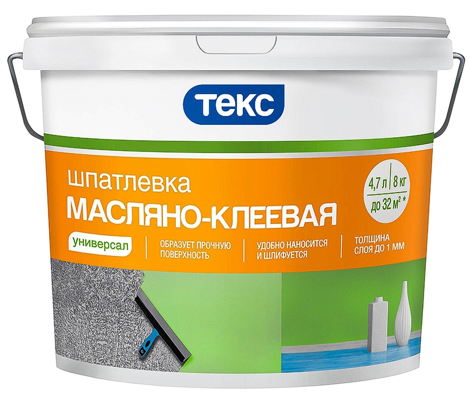 - На масляной основе. В состав входит масло, вода и мел. Сочетание этих компонентов делает смесь более прочной и долговечной, но и сохнет она дольше остальных видов.
