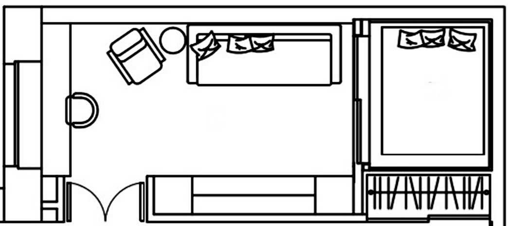 Очень важно, чтобы две зоны – спальня и гостиная, занимали примерно равное количество пространства. Это не только поможет эффективно использовать каждый метр пространства, но и сделает так, что эти зоны будут прекрасно смотреться вместе