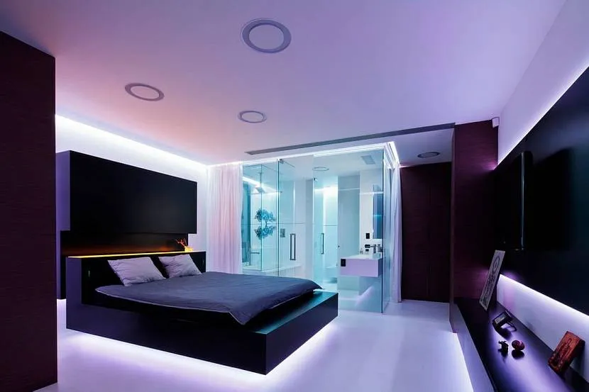 Спальня хай-тек в неоновом освещенииИсточник design-homes.ru