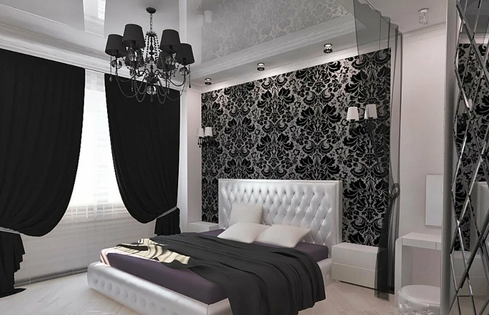 Чёрно-белые интерьеры спален в различных стилях