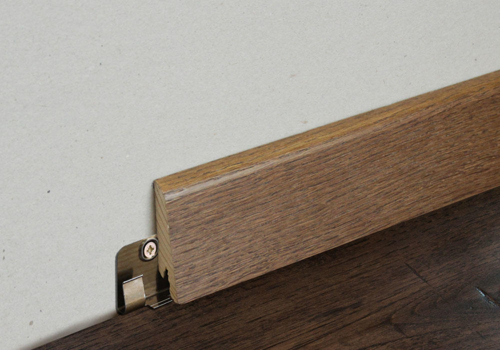 Виды фиксации шпонированных плинтусов к стене: