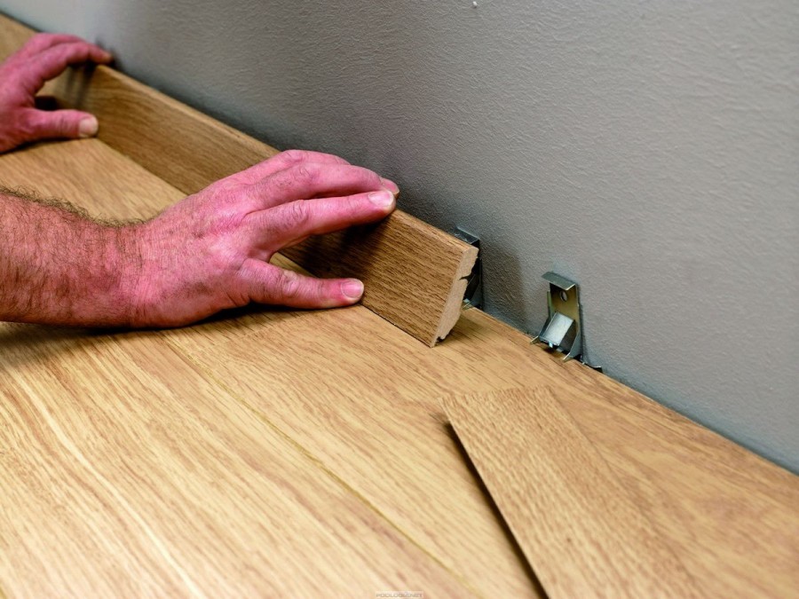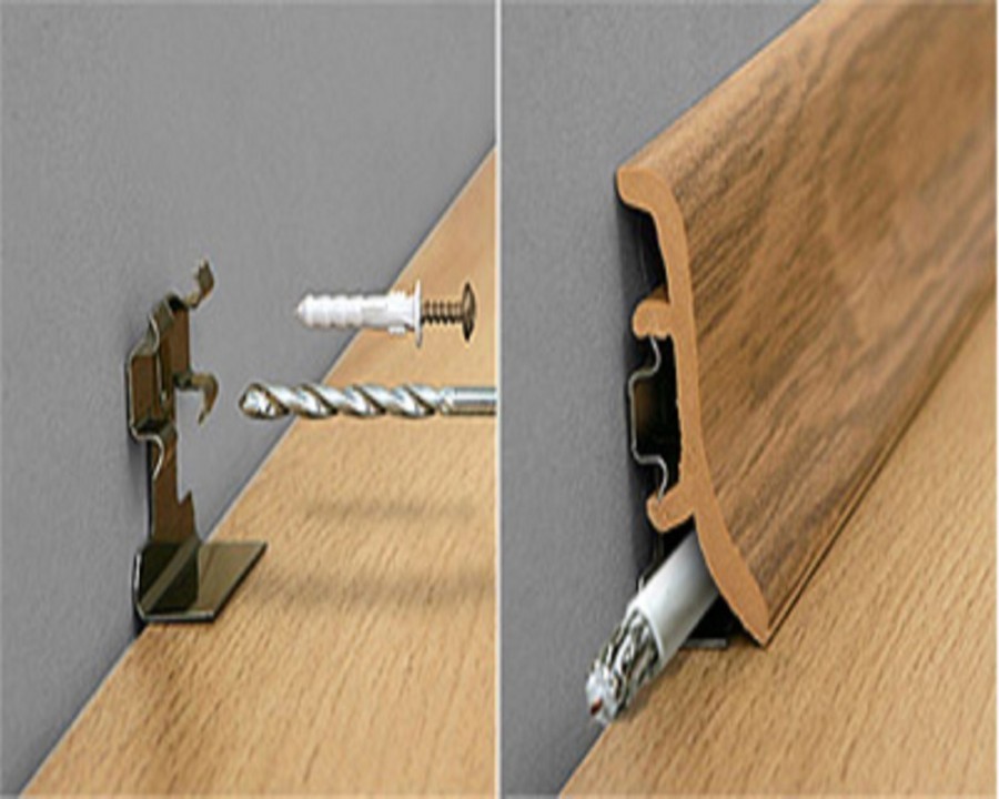 Перед тем как приступить к монтажу, необходимо выяснить, каким из 2-х способов устанавливать шпонированный плинтус. Можно его установить жестко, и можно для демонтажа в случае потребности. Самым простым креплением является монтаж на клипсы.