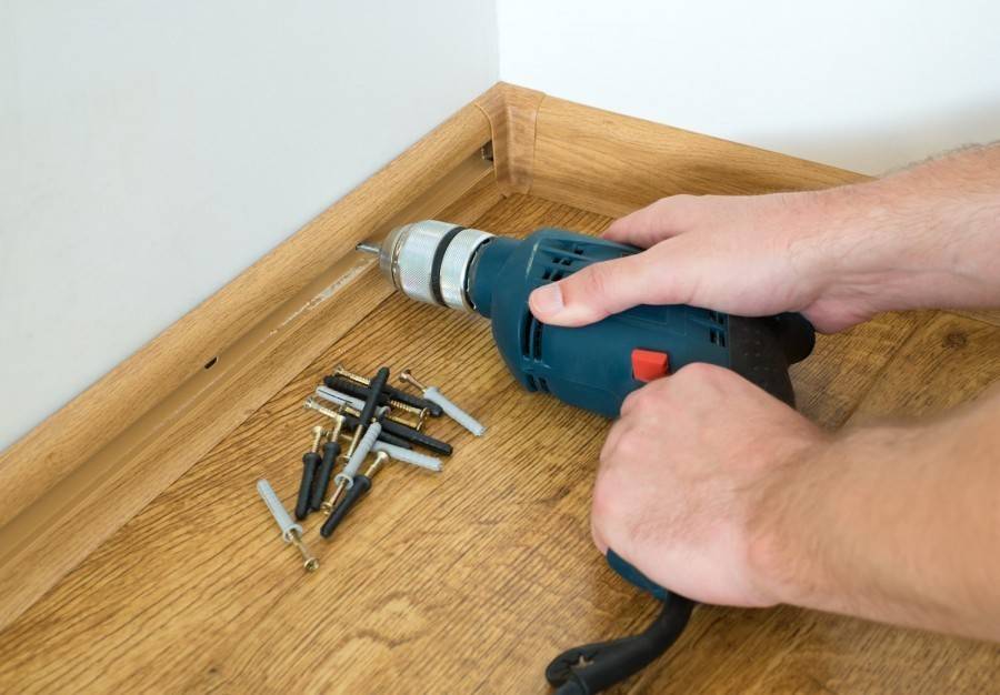 Если вы хотите, чтобы крепеж был максимально незаметным, используйте тонкие саморезы с маленькими шляпками, после маскировки их будет очень сложно разглядеть. Только учтите тот момент, что при использовании тонких саморезов, углубления под шляпку сверлить не придется. Вкручивать саморезы в стену нужно до упора. После этого нужно убрать плинтус и просверлить в стене отверстия на основе тех, что остались от саморезов, и вставить дюбеля. Затем нужно вернуть его на место и окончательно зафиксировать с помощью саморезов.