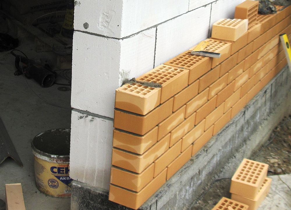 Облицовка газобетонных стен лицевым кирпичом или камнем.