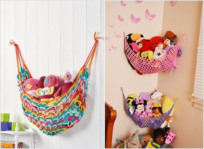 Для хранения мягких игрушек удобно использовать: напольные или подвесные корзины, полки, текстильные настенные кармашки.