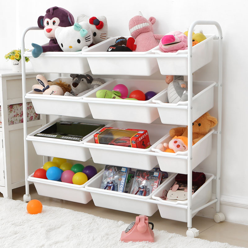 Некоторые используют для этих целей корзины или коробки. Основное их преимущество заключается в доступности. То есть купить такой предмет для хранения детских забав под силу каждому родителю. Игрушки сюда будут просто складываться в хаотичном порядке бессистемно. Найти любимую машинку или куклу не представиться возможным, пока полностью не вывернуть коробку. Это повлечет за собой дополнительную уборку. Установка стеллажа поможет добиться порядка в вещах, игрушках, а также книгах.