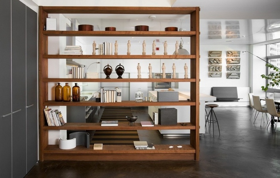 Стеллаж-перегородка подойдет для зонирования любой комнаты. Специально для каждой есть свои, которые будут выгоднее всего смотреться. Для квартиры-студии лучше подойдет полуоткрытая перегородка, которая разделит жилую зону от спальни или кухни. В гостиную хорошо впишется перегородка с полочками. В детской комнате часто ставят стеллаж, отделяющий игровую зону. Особенностью зонирования является лишь правильный подбор подходящего варианта.