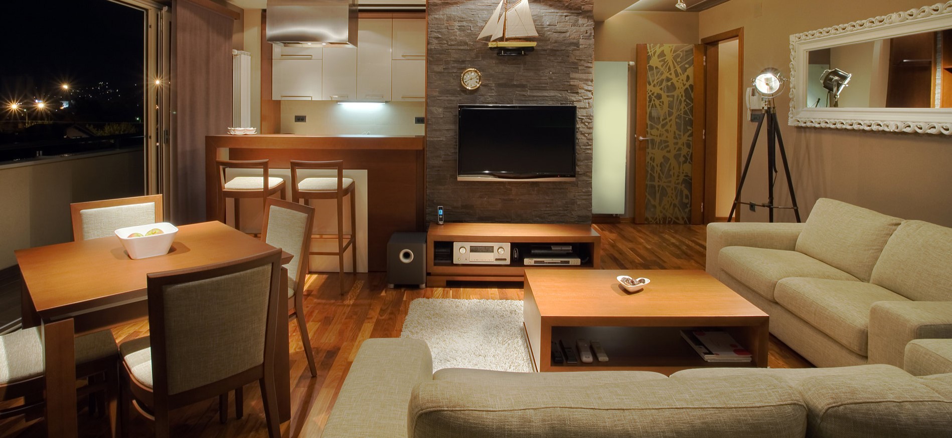 - Необходимо четко определить список основной мебели для гостиной. В него входит мягкая мебель, журнальный столик и стенка. Остальное приобретается по мере необходимости (тумба для телевизора, компьютерный стол, шкафы, полки для книг).