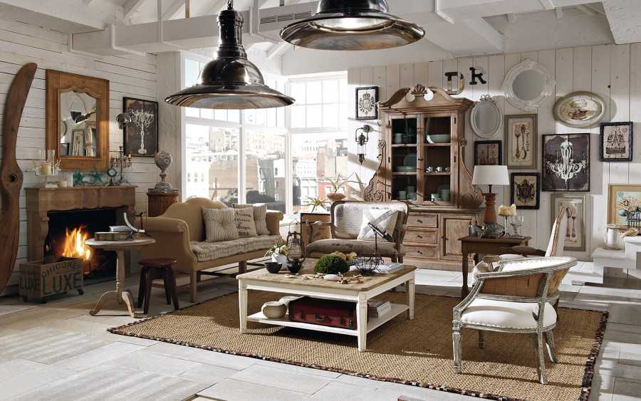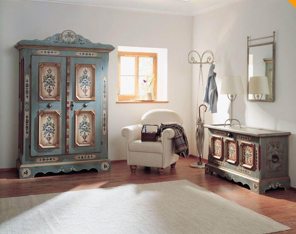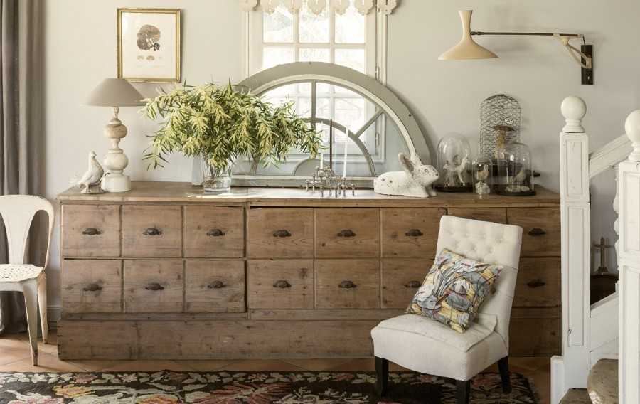 К характерным предметам предыдущих эпох относят деревянные сундуки, комоды, кресла-качалки, трюмо, буфеты, серванты. Мебель можно отреставрировать и заказать новую обивку, чтобы освежить интерьер.