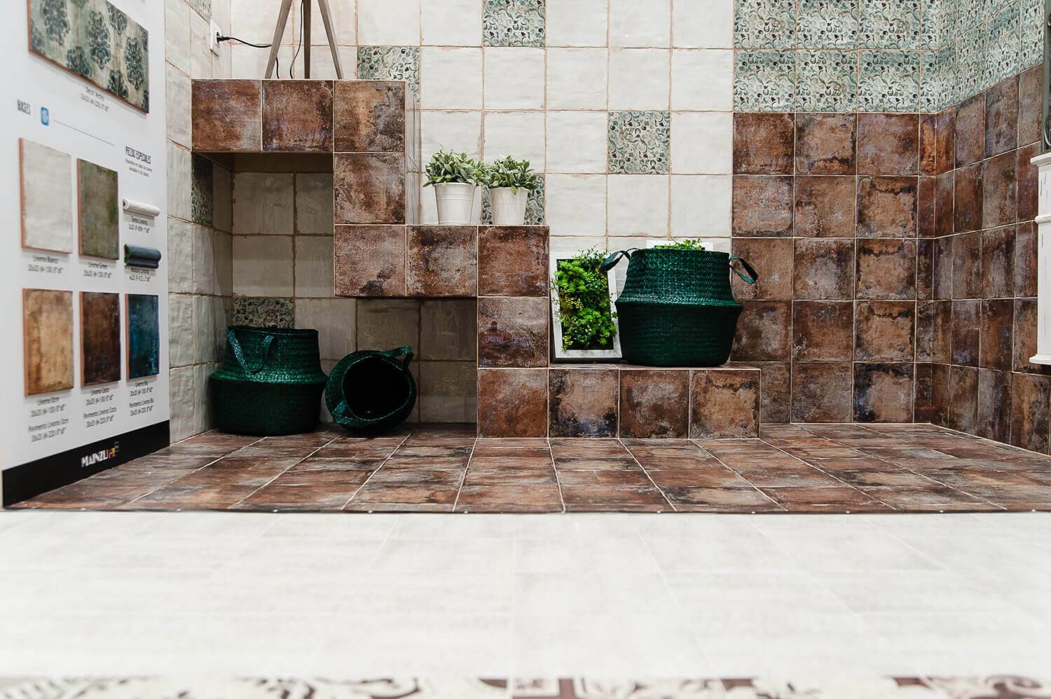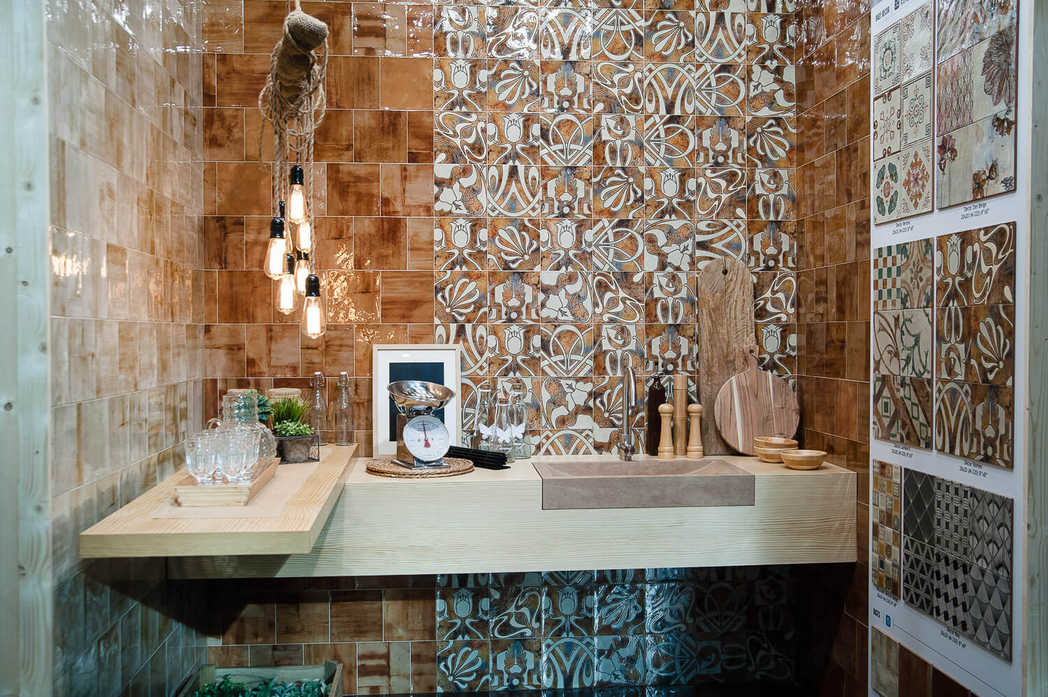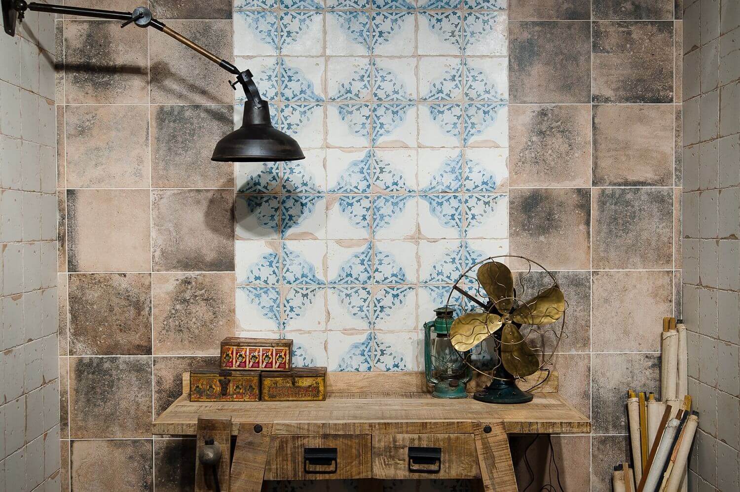 Для декорирования стен есть три решения: покраска, обои и керамическая плитка. По дизайну настенная плитка в стиле Винтаж – это преимущественно пэчворк, имитация штукатурки, вариации «дерева» (потертое, с трещинами, со следами старой краски и т.д.).