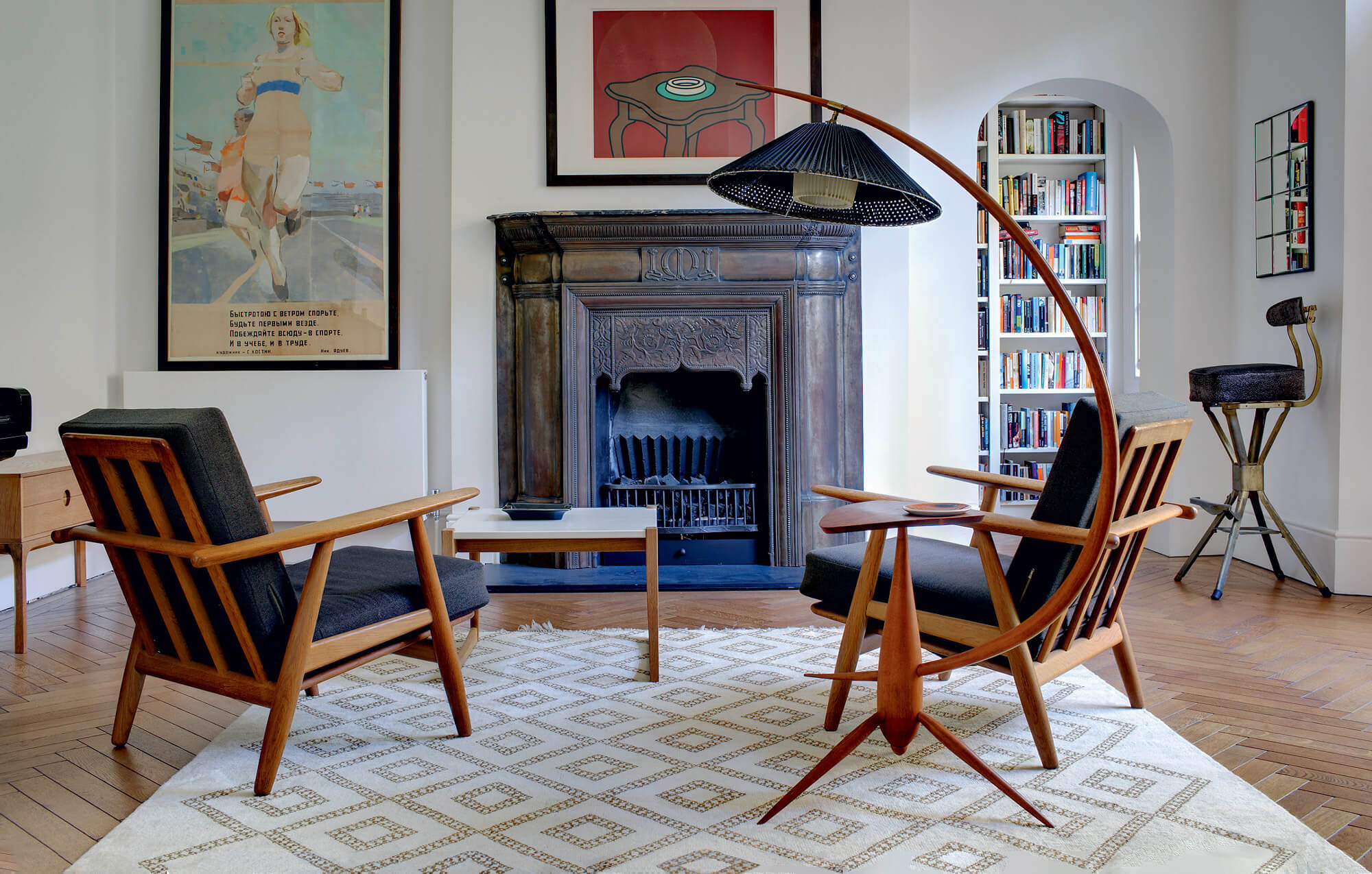 Фото: симметричное расположение мебели в интерьере гостиной винтажного стиля