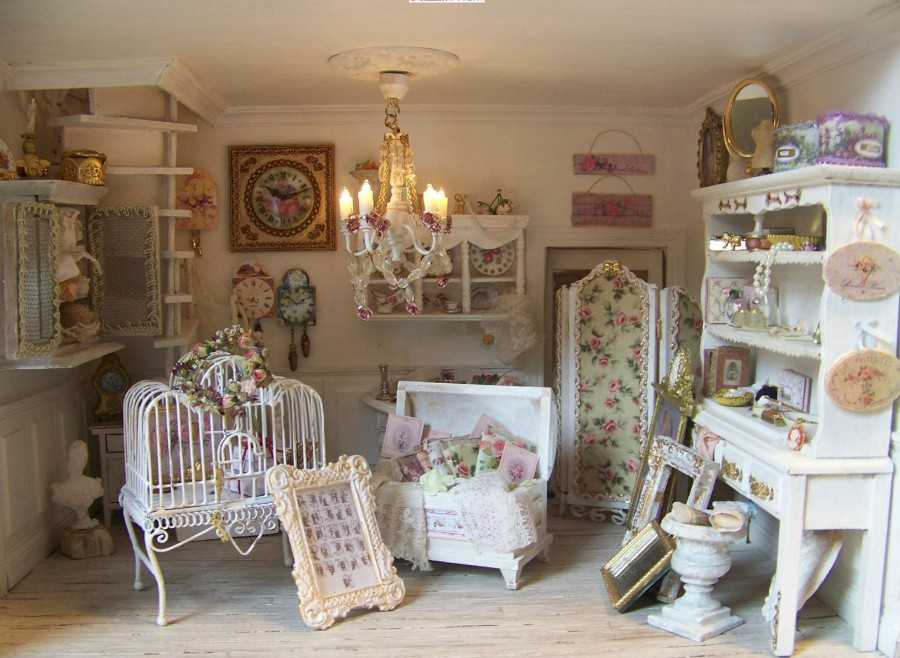 Любой декор в рассматриваемом стиле требует особенного внимания к мелким деталям. Ими могут стать скатерти и мебельные чехлы, старая посуда, книги со специфическим ароматом давности, вязанные салфетки и текстиль, статуэтки и куклы, медный чайник и, наконец, старые маятниковые часы. Однако со всем этим не стоит перебарщивать, как и во всем здесь важна мера.