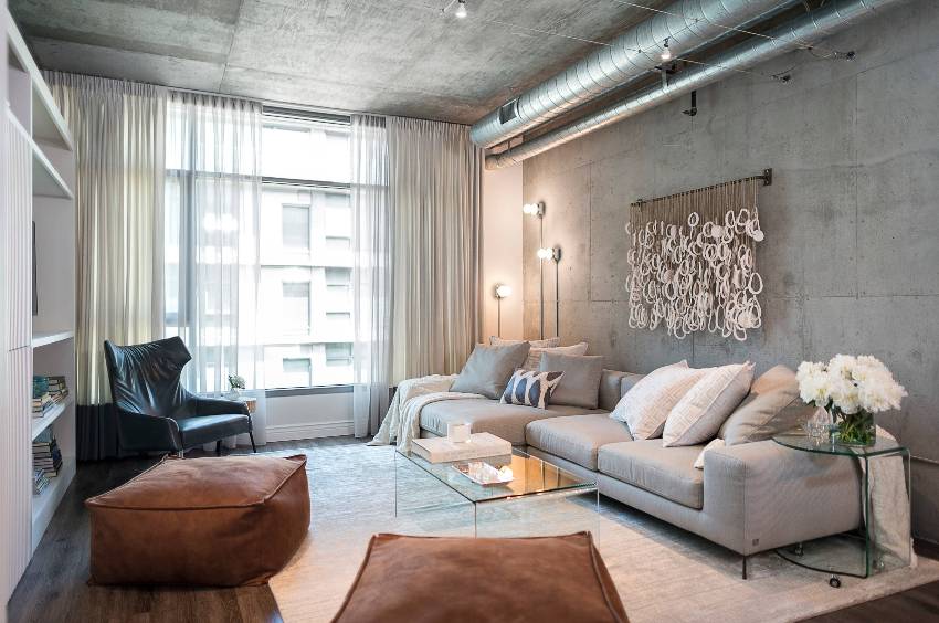 Все вышеперечисленное вовсе не означает, что нужно снять со стен штукатурку, а пол оголить до бетона. Дизайнеры обычно умело используют одну или две естественных детали – вентиляционные коробы или трубы – а для декора используют имитацию нужных материалов.