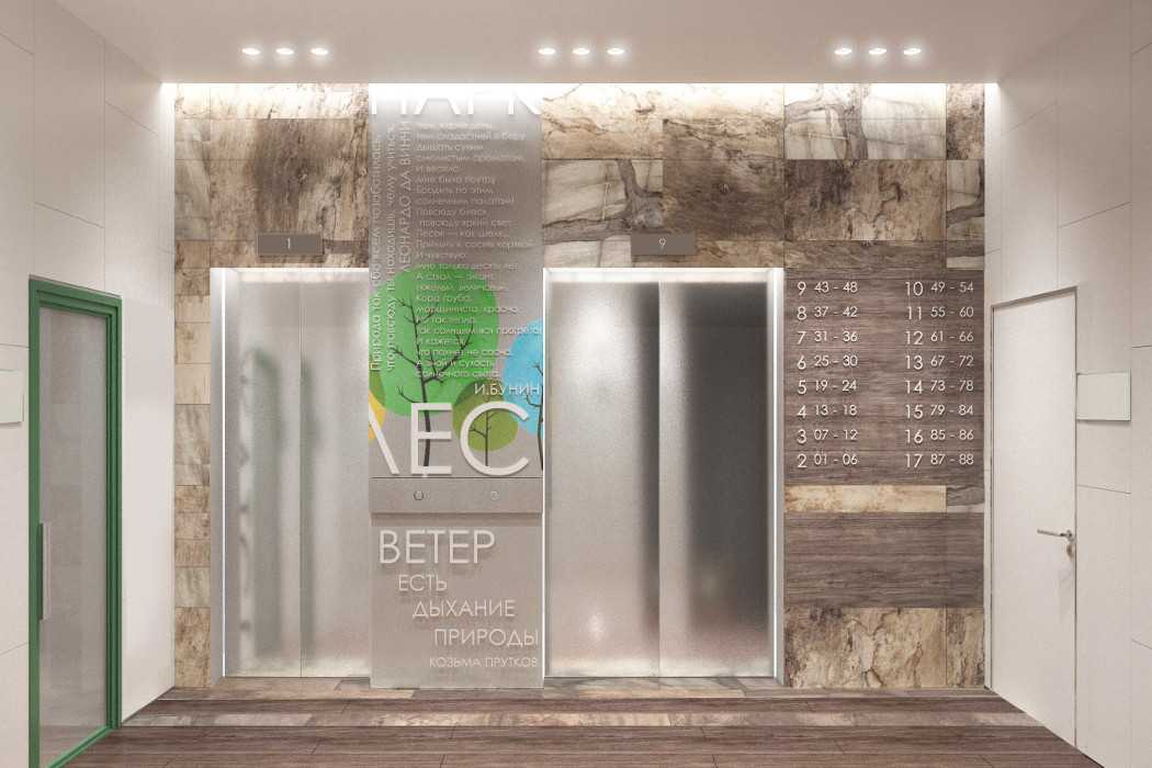 Этот же подход распространяется и на отделку внутренних помещений. Стены и пол в холлах будут облицованы керамогранитом редких цветов, имитирующим фактуру оникса и травертина. Применение в качестве отделочного материала керамогранита гарантирует, что и через много лет после сдачи в эксплуатацию подъезд не потеряет свой красивый вид.