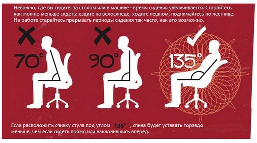 Как и в случае с плохой осанкой, вы можете думать, что боль в спине вызвана сидячим положением. Если у вас есть удобное кресло с поддержкой спины и поясницы, использование которого чередуется с периодами работы стоя вы, скорее всего, избавитесь некоторых незначительны болей в спине.