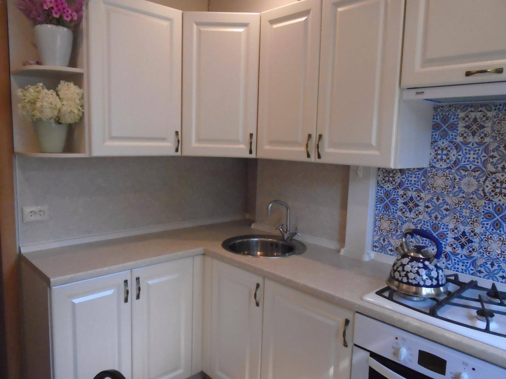 На малогабаритной кухне светлые тона должны преобладать во всем — это касается и мебели, и потолка, и стен, и даже пола.