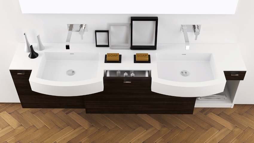 Цельнолитая столешница с раковиной