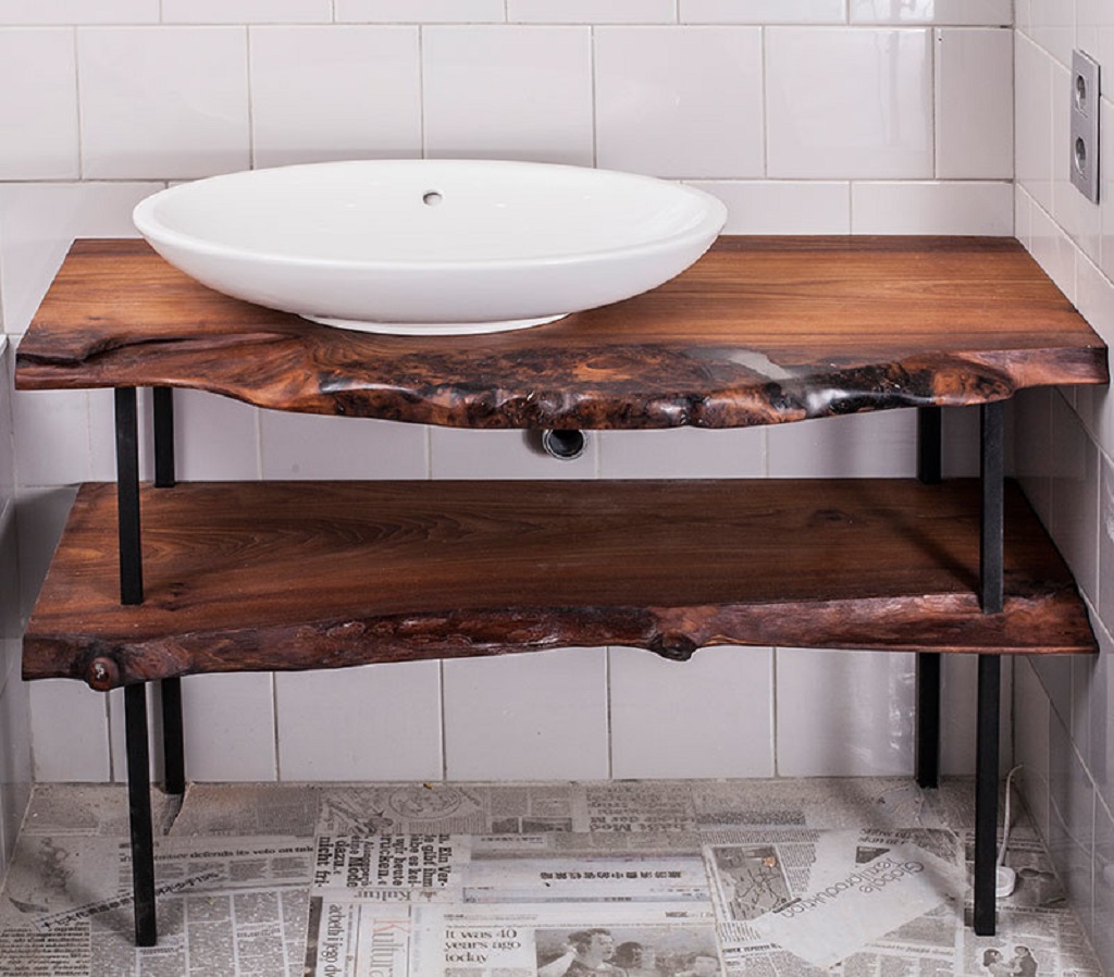 Столешница из натурального дерева обязательно должна быть обработана специальными пропитками и лаками для защиты поверхности.
