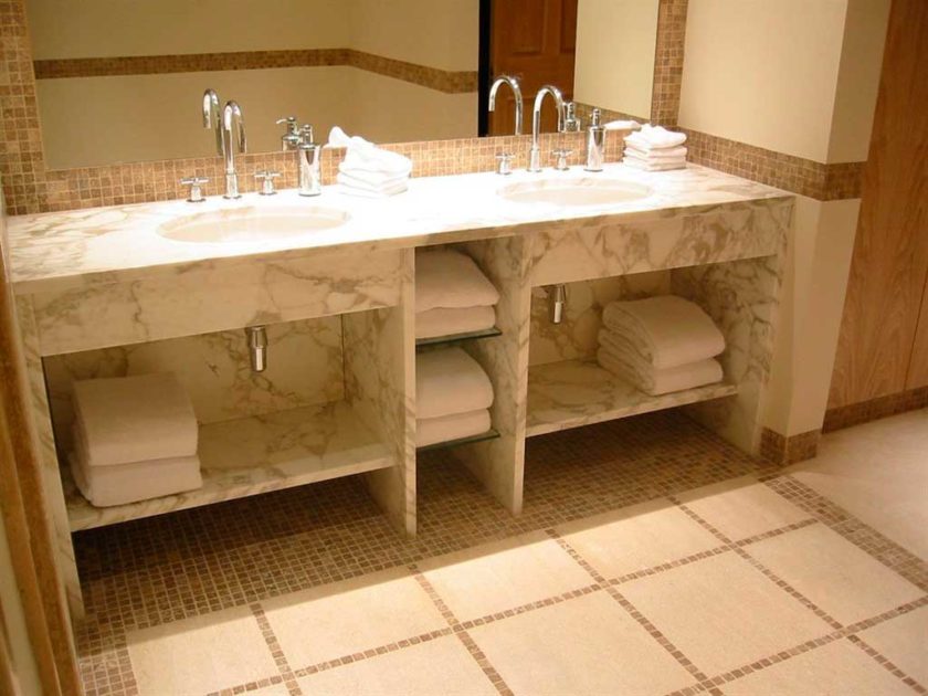 Преимущество столешницы из камня в ванную в ее высокой прочности, устойчивости к механическим воздействиям, долговечности.