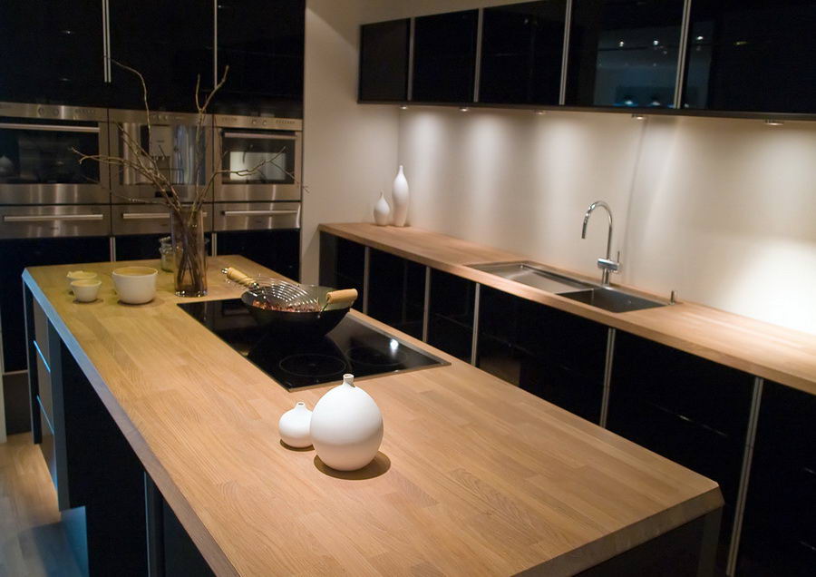 Столешницы, изготовленные из устойчивых к воздействию влаги видов дерева, таких как тик, мербау, ироко, палисандр, успешно используются в «мокрой» среде (то есть в кухне и ванной комнате). Они обладают исключительными визуальными достоинствами. Их рисунок и богатая цветовая гамма (в зависимости от вида – от глубокого коричневого, до темного с золотыми отблесками) придаст кухне солидную элегантность. Столешницы из экзотических пород дерева представляют собой стильный акцент в интерьере кухни.