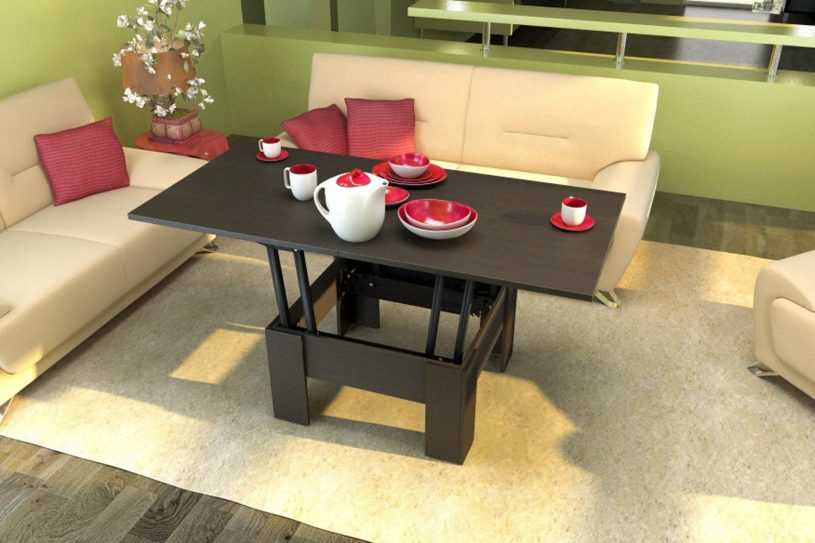 - экономичность — благодаря тому, что этот вид мебели можно легко трансформировать сразу несколькими вариациями — журнальный, обеденный стол или комод, не нужно будет приобретать дополнительную мебель;