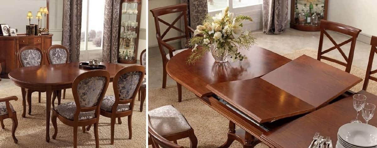 Есть и другие способы расширения столешницы, круглой или прямоугольной. Механизмы могут быть самыми разными и интересными. Эти технологии все время совершенствуются, предоставляя простор для выбора.
